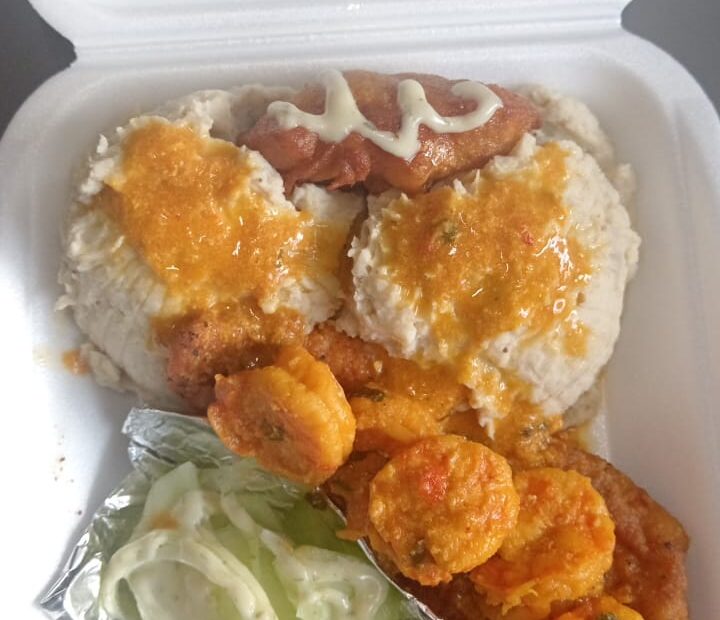 Afro Filete bañado con Langostinos al Ajillo