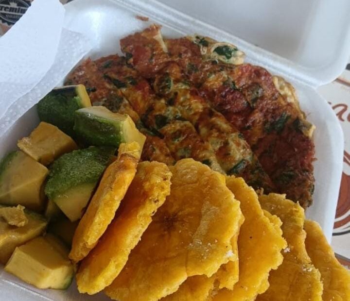 Omelette, aguacate, patacones